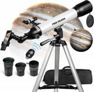 ★【Astronomical Telescope with Superior Optics】The refractor telescope features a 700mm focal length and 90mm aperture. 90mm objective lens collects more light than 60mm, 70mm, 80mm telescope, so the image appears brighter in the eyepiece.Coated with multiple layers ensures high light transmission, to make the image more realistic and clearer.