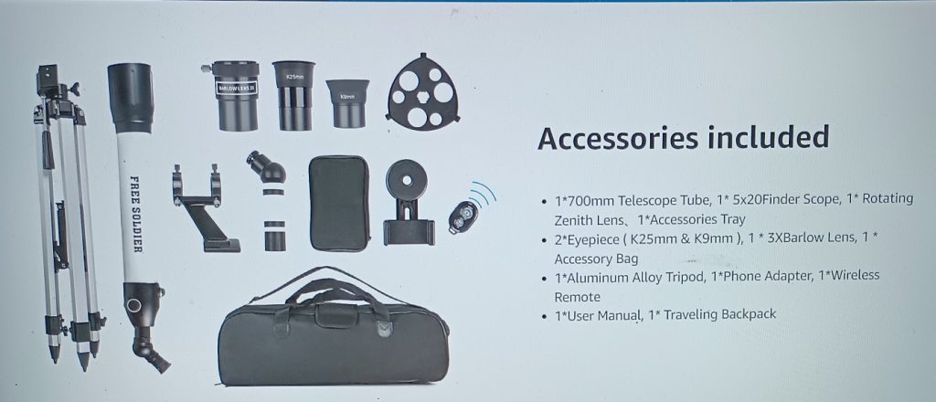 ★【28X-233X Powerful Telescope】 This refractor telescope is equipped with a long focal length of 700mm. Comes with K9mm and K25mm eyepieces(Better than H series eyepiece), 3x barlow lens, and it can achieve magnification of an astonishing 28 to 234 times. The 5×20 finder scope makes locating objects easily and precisely. The best beginner telescope for stargazing, viewing planets and the moon. If you would lie to see more details of the moon and planets, choose this one!